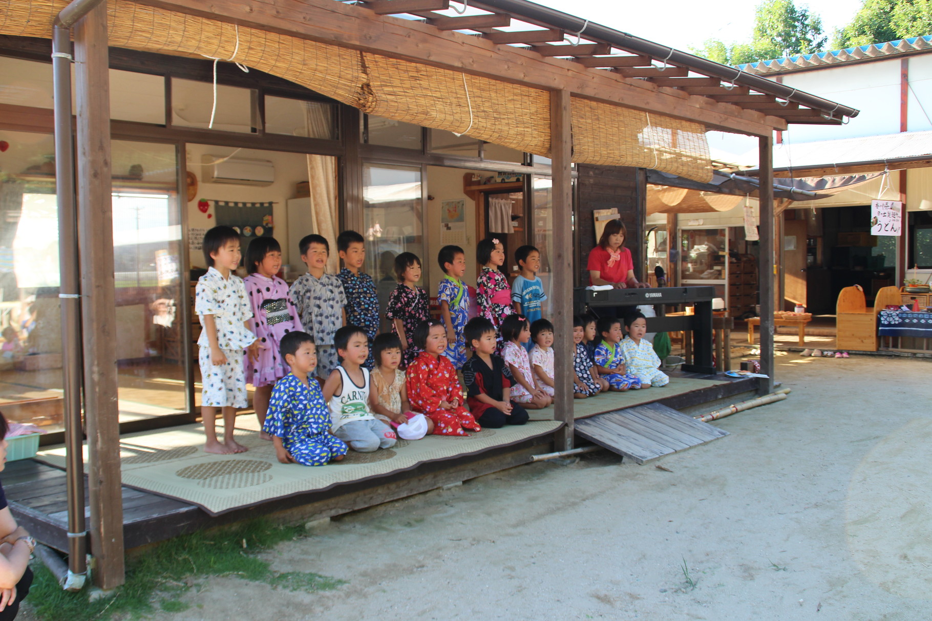 今年もこばと夏祭りが行われました。まずは子どもたちの元気な歌と出し物がオープニングを盛り上げます。