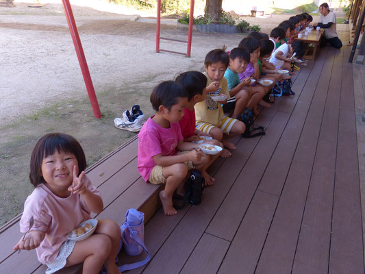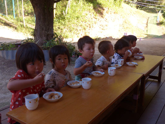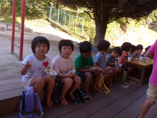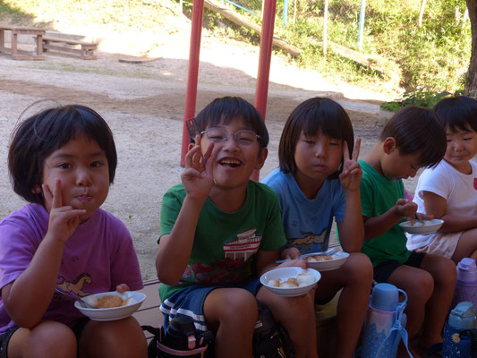 お供えものが完成し、みんなでおやつをいただきましたよ!