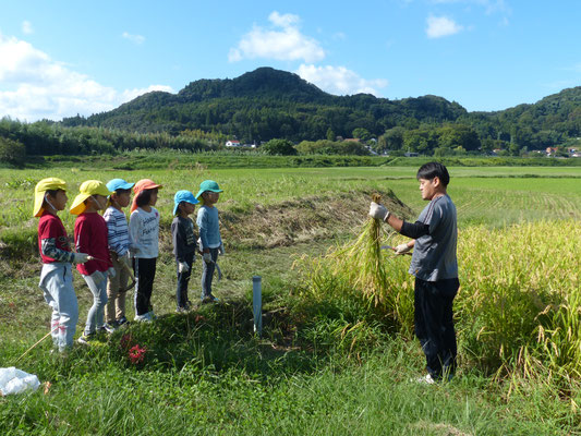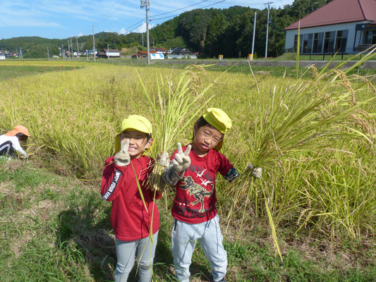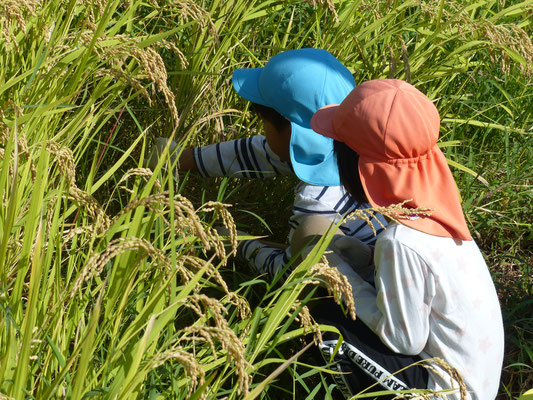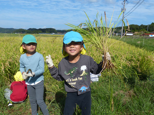 今日は、ぶどうさんが稲刈りに挑戦しましたよ!