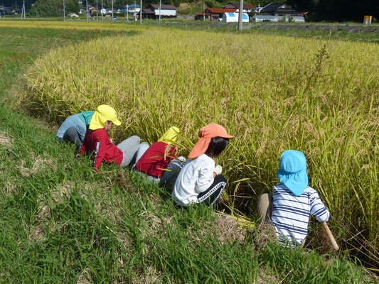 今日は、ぶどうさんが稲刈りに挑戦しましたよ!