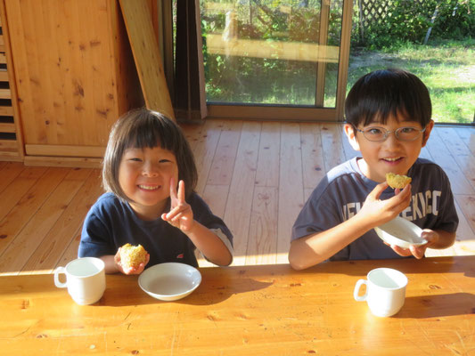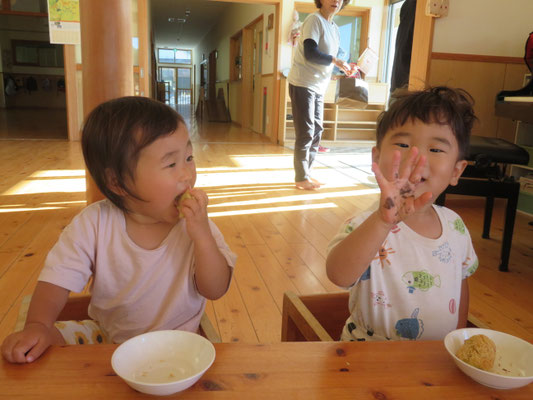 おはぎが大好きな子どもたち、大きなお口ではパクリ、あっという間に食べ終わっていましたよ!