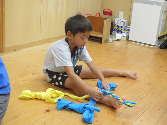 『今日ね、縄跳び編みするんだ~!』ととっても嬉しそうな年長さん♪